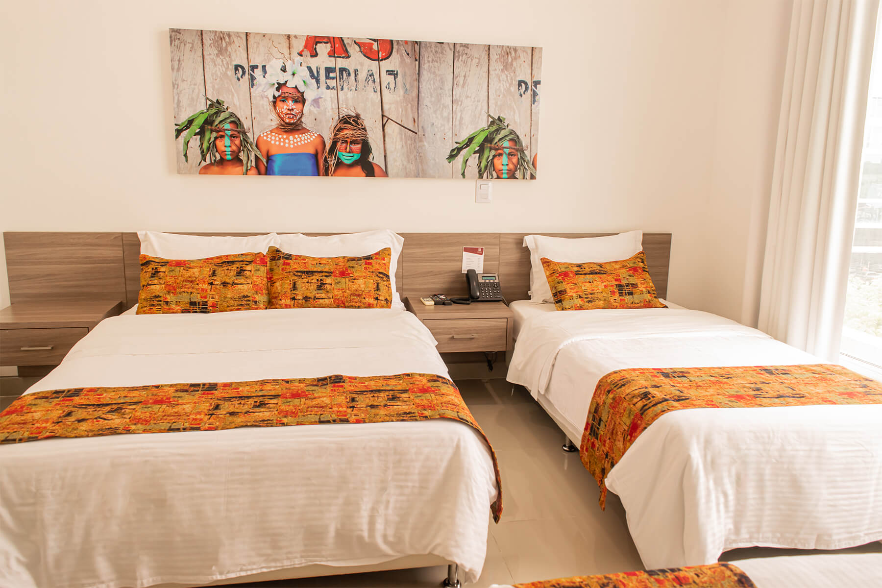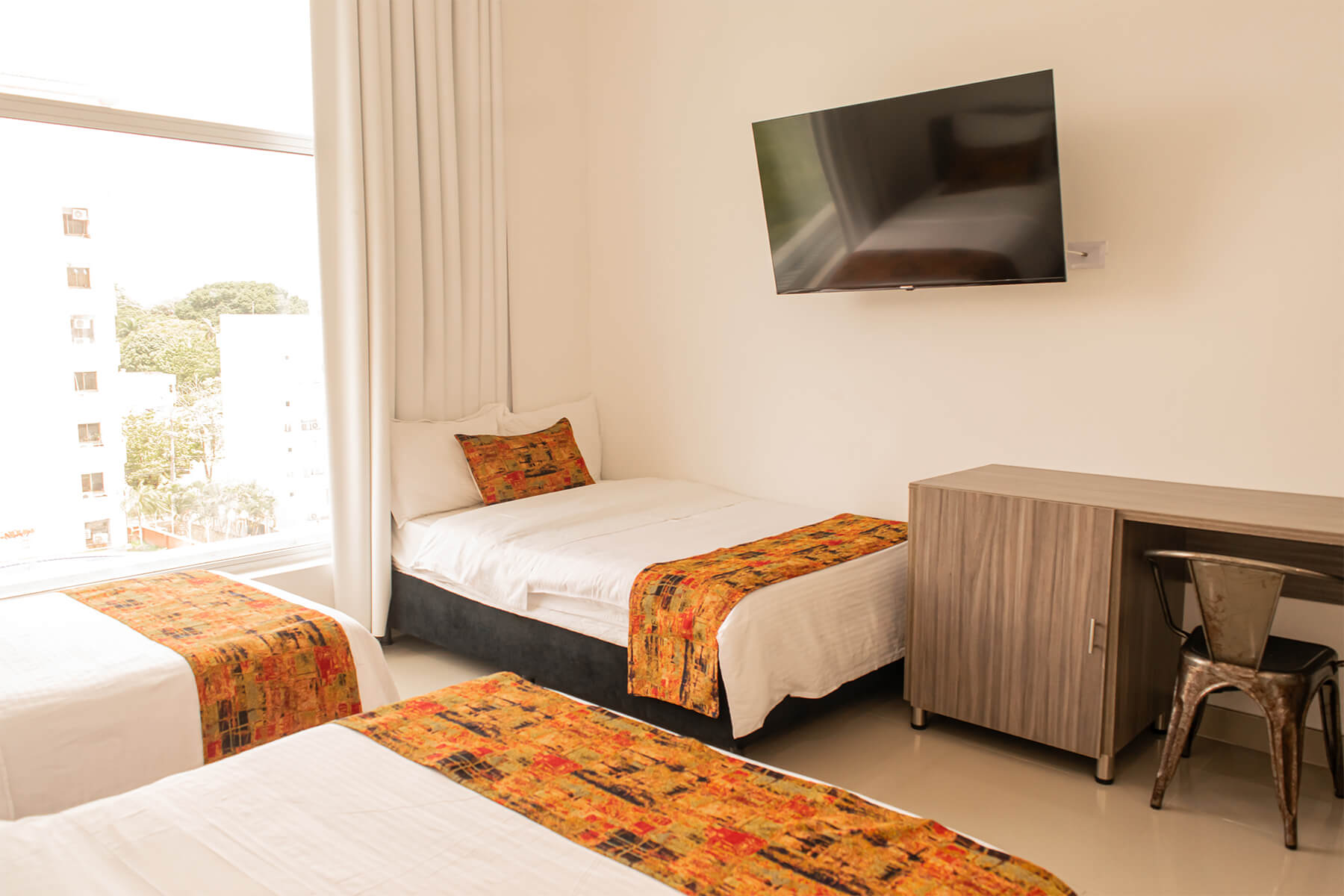 Disfruta de una habitación ideal para compartir en familia o con amigos. Nuestra habitación triple cuenta con 3 camas sencillas de 1,20 x 1,90 metros en un espacio de 16 m². Ofrece un equipamiento completo, incluyendo internet Wi-Fi ilimitado, TV LED de 40”, ventanas con aislamiento acústico, aire acondicionado, minibar, teléfono y baño privado con ducha. Además, disfrutarás de amenities de baño, secador de pelo y servicio de despertador. ¡Todo lo que necesitas para una estancia cómoda y placentera!